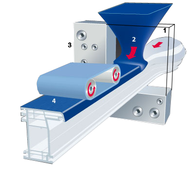 Alimentación de la masa fundida de PVC liquida y blanca a través del extrusionador principal. A través de un coextrusionador se añade la masa fundida acrílica de color. En la herramienta de coextrusión se unen de forma inseparable los dos componentes líquidos. La superficie del perfil se pule con una rectificadora para conseguir una superficie cerrada con una alta brillantez de los colores.